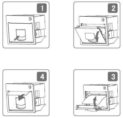 d)合上紙倉(cāng)蓋,打印頭走紙軸壓齊打印紙后稍用力把打印頭走紙軸壓回打印頭并把旋轉(zhuǎn)