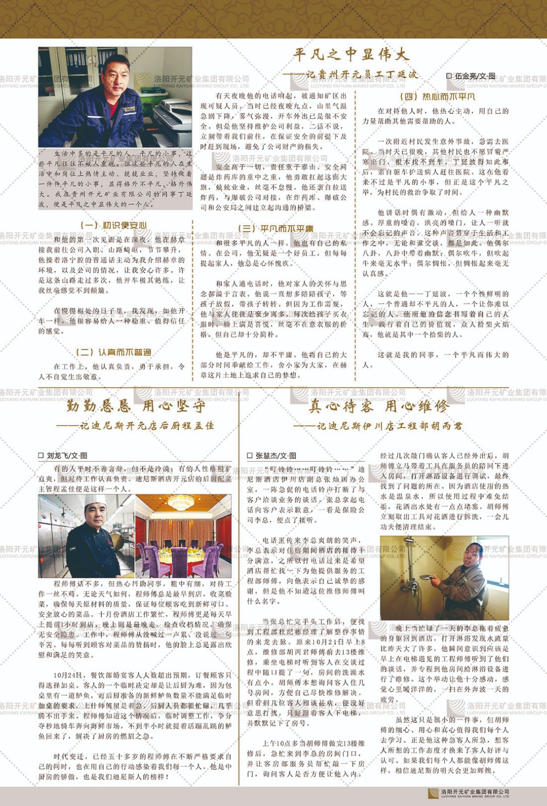 洛陽開元礦業(yè)集團(tuán)有限公司簡介洛陽開元礦業(yè)集團(tuán)有限公司,始成立于2006年,位于洛陽市開元大道269號。集團(tuán)旗下共有五余家全資子公司,業(yè)務(wù)涉及有色金屬礦山開發(fā)、礦產(chǎn)品購銷與進(jìn)出口貿(mào)易、房地產(chǎn)開發(fā)、文化藝術(shù)、企業(yè)管理與咨詢、資本投資等多個領(lǐng)域。民建河南省委委員、民建河南省委企業(yè)委副主任、民建洛陽市委委員、企業(yè)委主任、洛陽民建企業(yè)家協(xié)會會長許明月是公司創(chuàng)始人,現(xiàn)任洛陽開元礦業(yè)集團(tuán)有限公司董事長。在礦業(yè)領(lǐng)域,洛陽開元礦業(yè)集團(tuán)擁有多家實(shí)力雄厚的子公司:貴州開元礦業(yè)有限公司探、采礦權(quán)面積共11.33平方公里;興??h銅鑫礦業(yè)有限公司探礦權(quán)面積8.76平方公里,礦山資源潛力巨大;2021年,開元集團(tuán)與盧氏中科礦業(yè)有限公司開展戰(zhàn)略合作。盧氏中科礦業(yè)有限公司專注于有色金屬的浮選、加工和銷售,擁有強(qiáng)大的技術(shù)支撐平臺,是集探、采、選、冶、研為一體的中大型綜合礦業(yè)企業(yè)。目前,盧氏中科王家河1000噸選礦廠已成功投產(chǎn),雙河金礦、柳關(guān)欒盧鉛鋅礦相繼順利開工,樓房銀礦與圪老灣鉛鋅礦的深部探礦重大突破,標(biāo)志著礦山版圖取得重大進(jìn)展,為開元集團(tuán)后續(xù)發(fā)展奠定了堅實(shí)基礎(chǔ)。在文化傳媒領(lǐng)域,洛陽市明月美術(shù)館通過豐富多樣的藝術(shù)展覽、學(xué)術(shù)研討和公共教育活動,努力打造一個集展覽、交流、教育、研究為一體的綜合性藝術(shù)平臺。此外,在金融投資領(lǐng)域,開元集團(tuán)旗下的北京明峰資本管理有限公司專注于投資具有高增長潛力的優(yōu)秀企業(yè),特別是高科技、新能源、環(huán)保等新興產(chǎn)業(yè),為客戶提供個性化的資產(chǎn)配置服務(wù)。在做好企業(yè)經(jīng)營的同時,開元集團(tuán)始終不忘企業(yè)的社會責(zé)任和家國情懷,以突出的愛心公益事跡,開展了一系列公益慈善活動:“民建林”公益事業(yè)通過“思源基金”“幫幫公益”線上公益平臺,與眾多愛心人士籌措資金20余萬元;資助541名貧困大學(xué)生共計270余萬元,推進(jìn)“數(shù)字助力——河南AI人才培養(yǎng)”;捐款10萬元,馳援京津冀、黑龍江洪水地質(zhì)災(zāi)害……公司于2017年底被洛陽市慈善總會評為“洛陽慈善風(fēng)云榜——十大愛心集體”。洛陽開元礦業(yè)集團(tuán)有限公司秉承持續(xù)發(fā)展理念,憑借多年來良好的企業(yè)信譽(yù)與經(jīng)營業(yè)績,與全國多家企業(yè)建立了良好合作關(guān)系,受到社會各界的一致好評,多次榮獲“納稅標(biāo)兵”“先進(jìn)企業(yè)”“招商引資模范企業(yè)”等榮譽(yù)稱號?;赝麃頃r路,開元人勠力同心,以“闖”的精神和“創(chuàng)”的勁頭,一路披荊斬棘,踏過千山萬水;展望新未來,開元人凝心聚力,不執(zhí)于“舊”,無畏于“新”,秉承“勇于跨越,追求卓越”的企業(yè)精神,乘著國家高質(zhì)量發(fā)展新征程的東風(fēng),跨過高山,越過大海,向著集團(tuán)多元化、國際化的目標(biāo),逐夢遠(yuǎn)航,跨越前行!